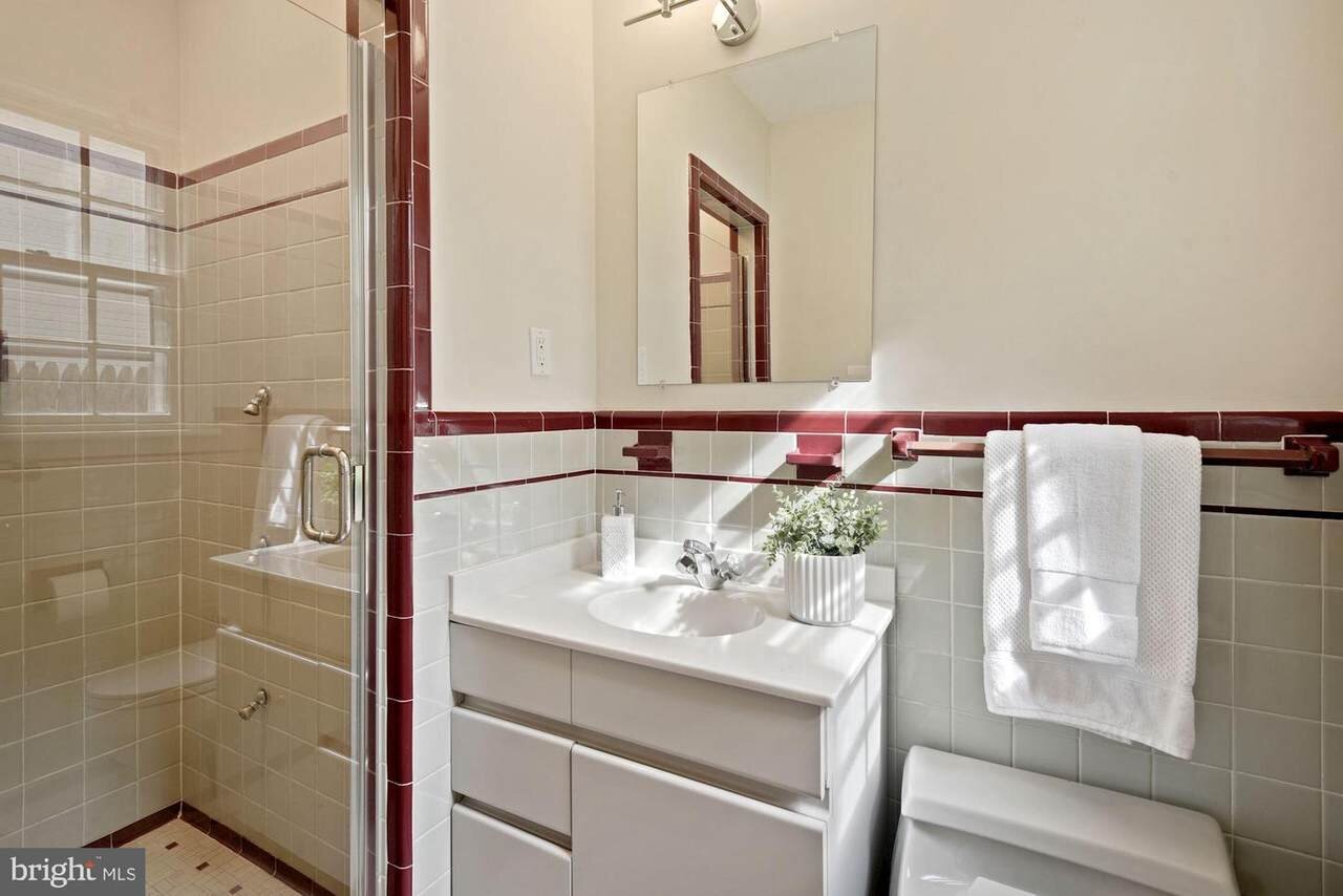 Entry level large primary suite with room for a king a features three closets and ensuite bath with cool vintage tile & updated fixtures. Two additional main level bedrooms with plenty of closet space, a large bathroom with updated lighting & fixtures. Two bonus Hall closets provide extra storage on this level. HUGE unfinished WALK UP attic is ready for you to execute your vision - Playroom, Home office, Meditation/Yoga space, Extra storage, or add dormers to create more bedroom/bathrooms!