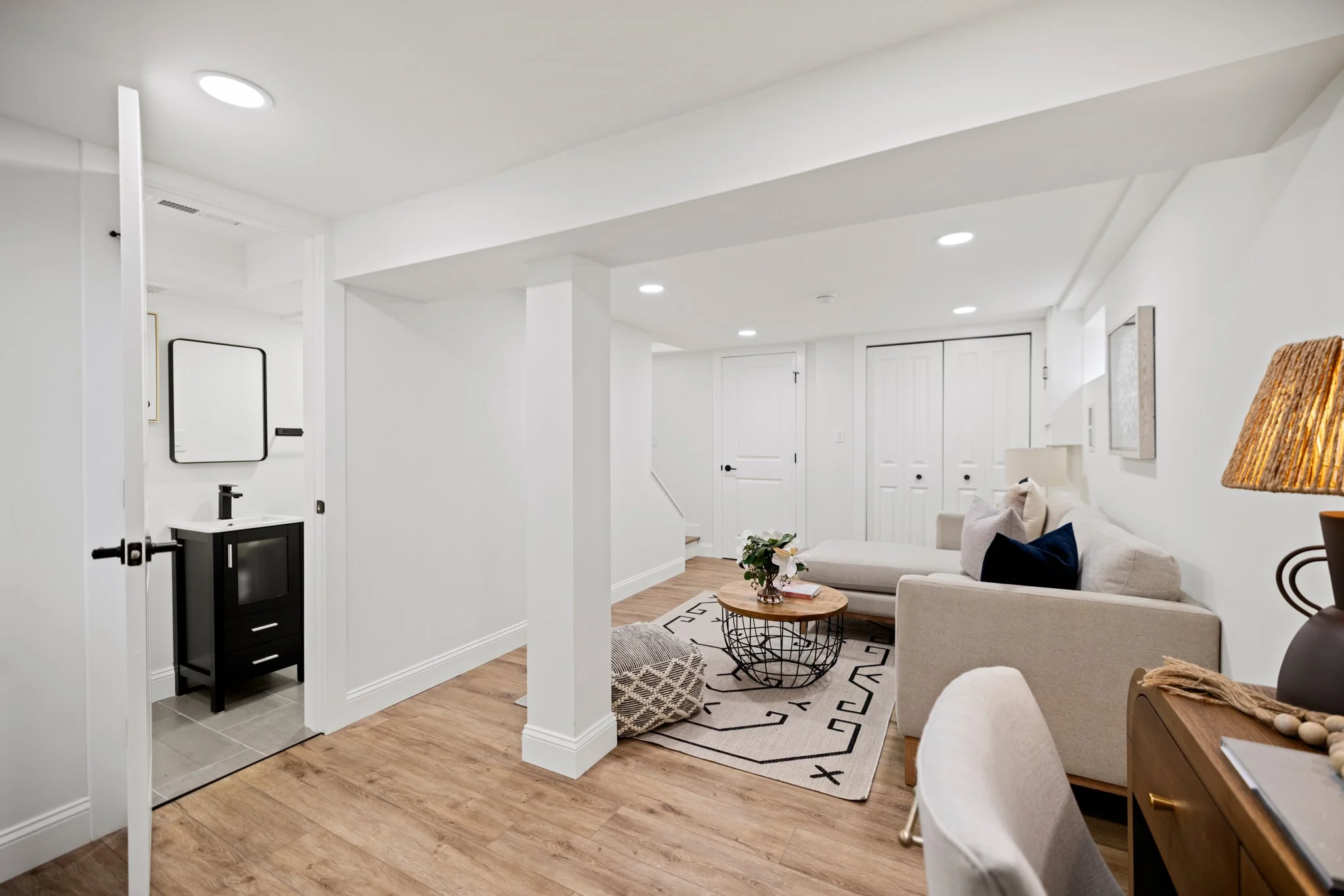 Upstairs, you'll find two spacious bedrooms with ample closet space, flooded with natural light, and sharing a full bath spa like bath with new fixtures. The fully finished basement is bright and versatile, offering a living area or bedroom, or home office and a full bathroom with custom tile + a laundry room The basement also provides direct access to the backyard.