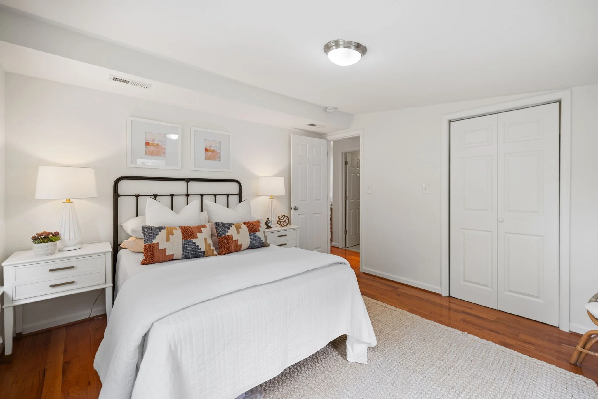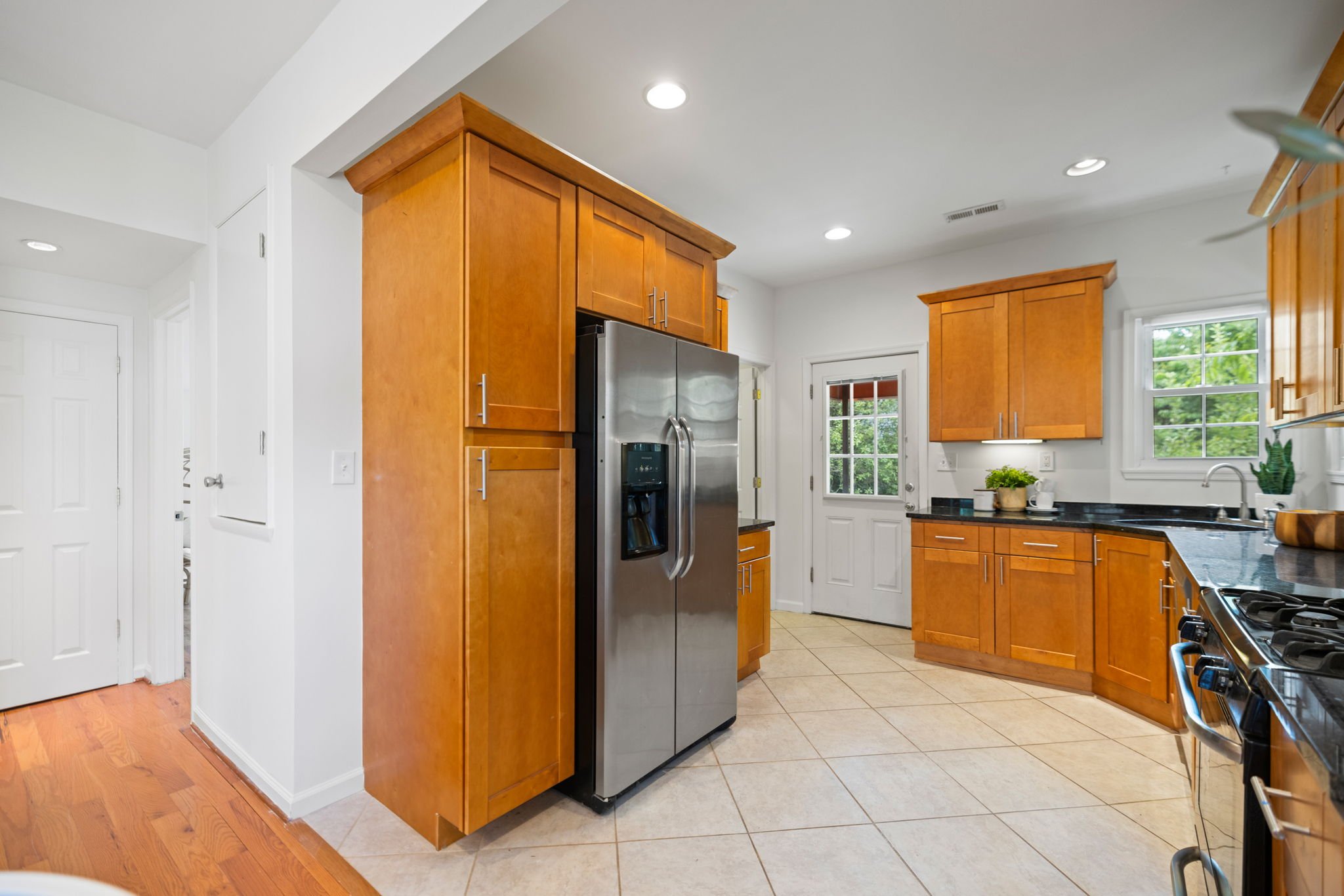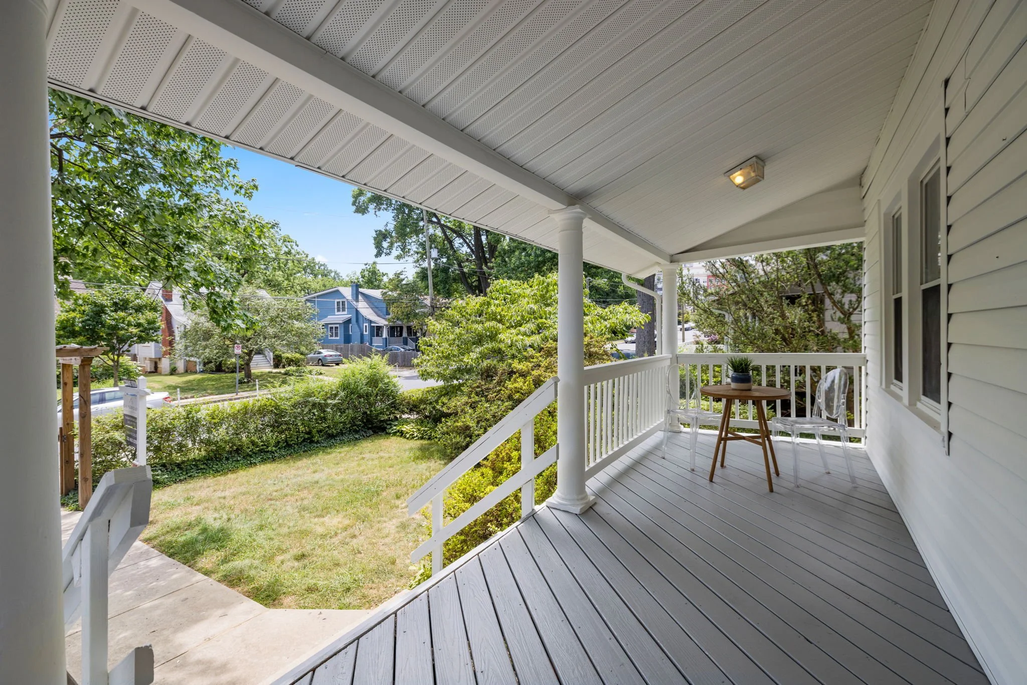LOCATION IS PERFECTION! You are just blocks to Whole Foods, The Metro, Movies, shops, parks, schools & the new Silver Spring Aquatic center! This home's curb appeal charms you even before you enter inside! The welcoming arbor greets you as you approach the home's front yard, which is lined by a row of boxwood shrubs. The front porch, that runs the width of the home, with it's white columns adds another layer of warmth to this darling home! Inside, this home boasts 9' ceilings, hardwood floors on main level and recessed lights in living areas. The kitchen features 42" cabinets, granite countertops, and a gas range. There are 2 bedrooms both en suite baths and with ample closet space on the MAIN LEVEL! The lower level boasts an open floor plan and features a large Rec Room, wall-to-wall carpet and full size, side-by-side washer / dryer. The huge rear, flat yard has endless possibilities!