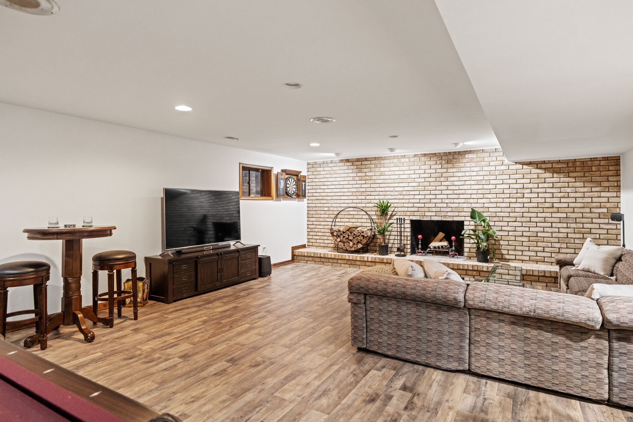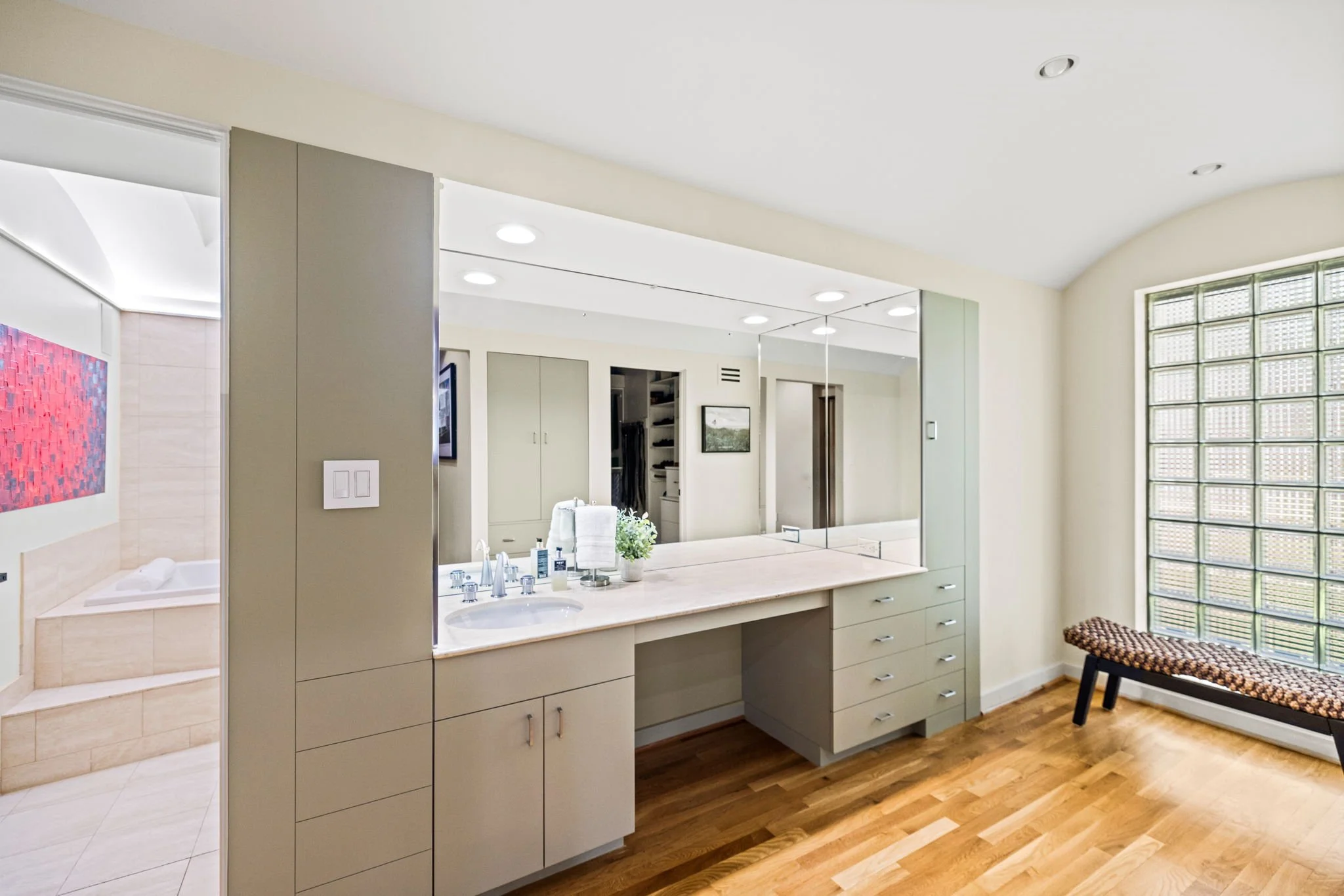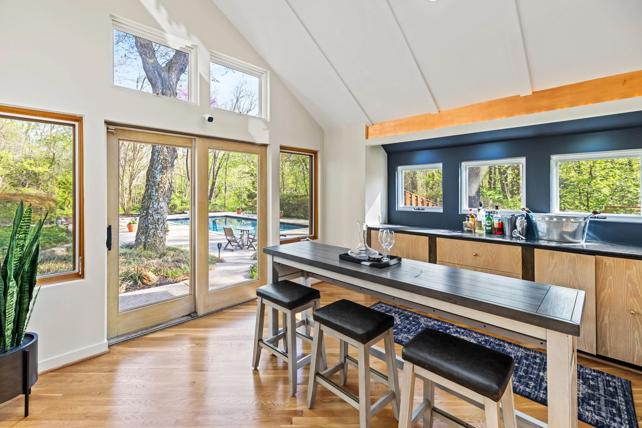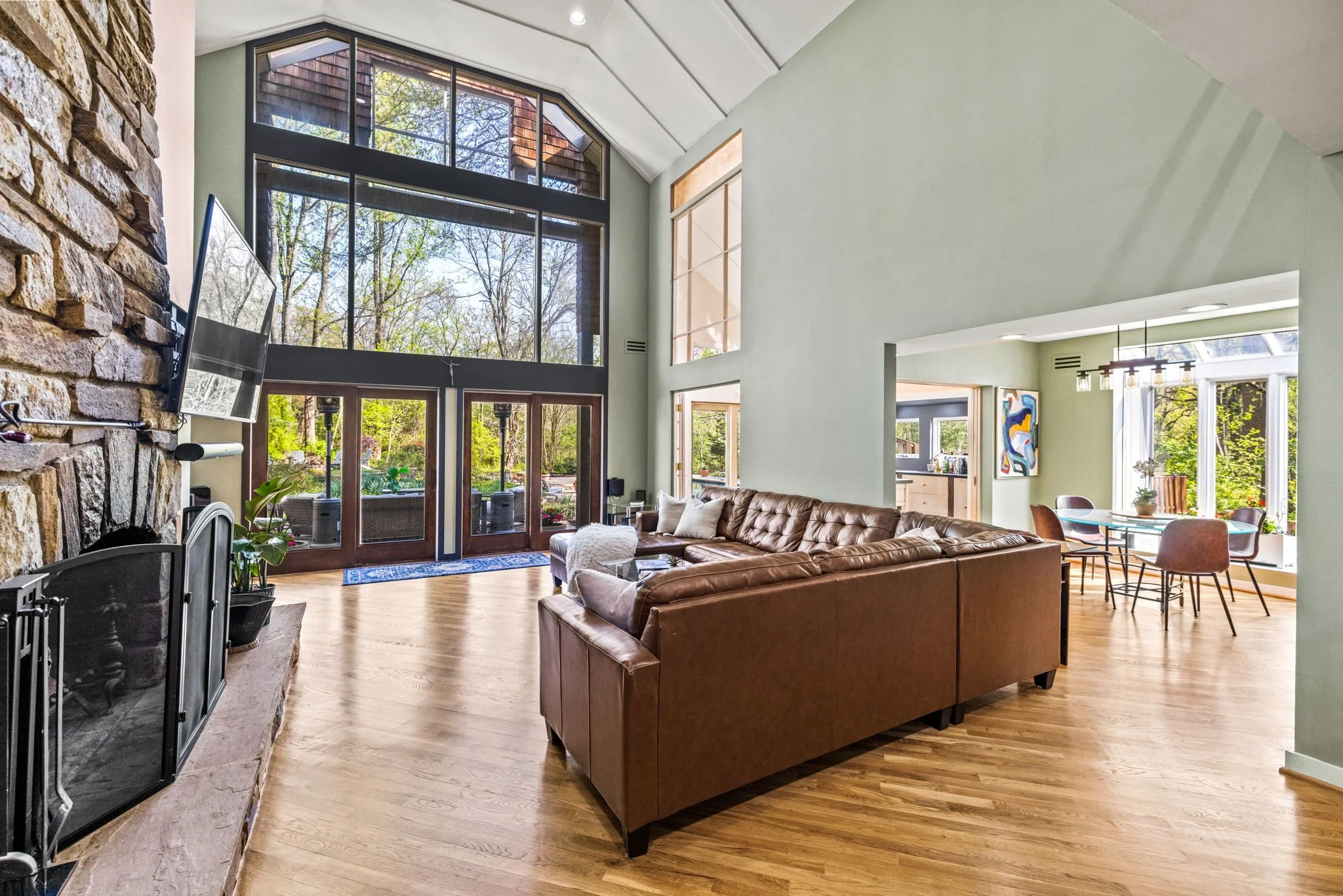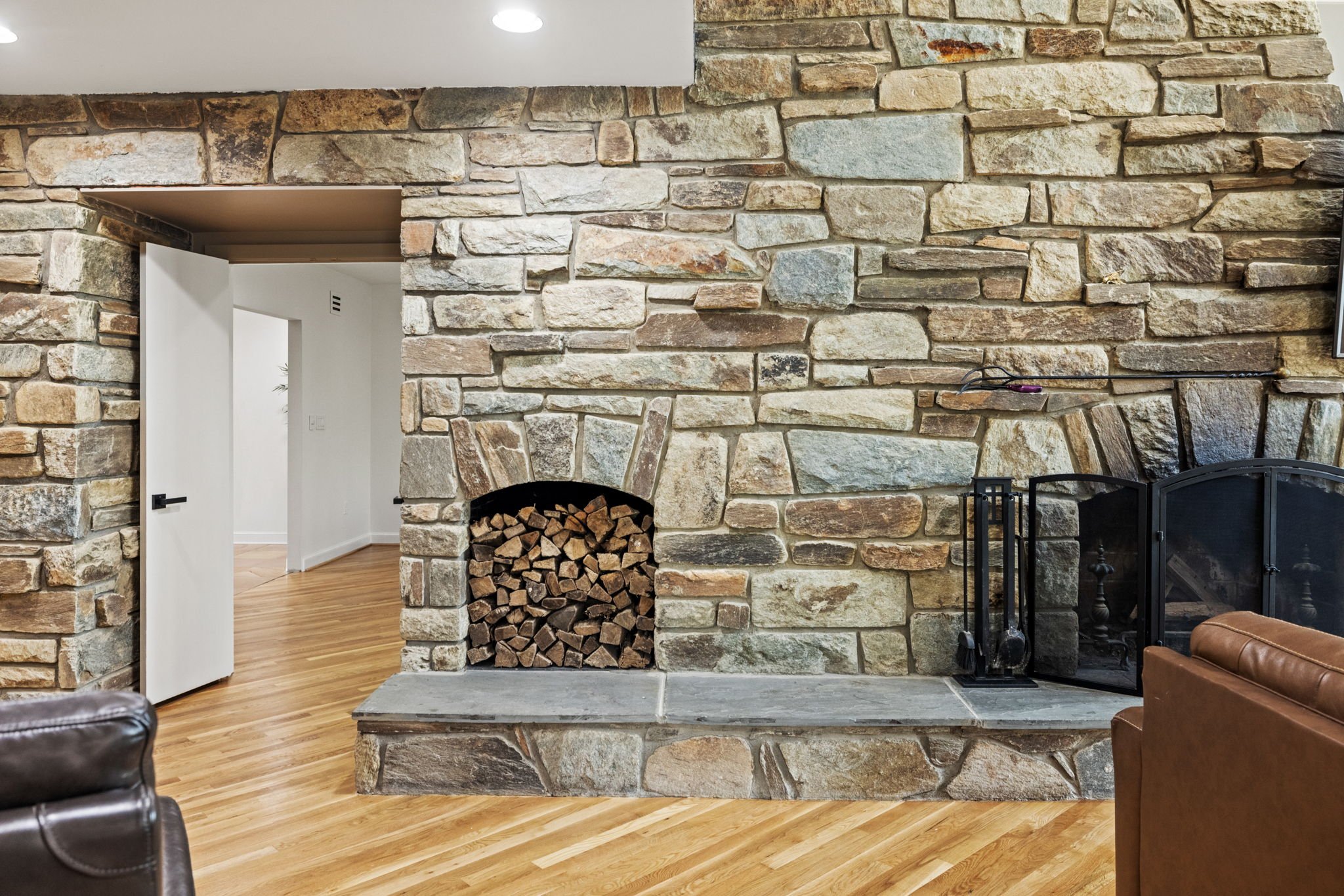 This stunning Crowell-Baker custom contemporary is a rare find, thoughtfully reimagined by renowned architect Mark McInturff and meticulously updated throughout by the current owner with over $200K in enhancements. Nestled on a serene and beautifully landscaped 2-acre lot, this home offers the best of one-level living, with timeless architectural features and today’s most coveted smart-home upgrades. A welcoming stone-floored foyer opens to a graceful layout that includes three bedrooms in one wing and a private library with fireplace and built-ins adjoining the tranquil primary suite in the other. The suite features dual walk-in closets, a spa-inspired bath, a cozy fireplace, and smart home enhancements such as Lutron Caseta lighting, motion-sensor switches, and a smart thermostat. The main level showcases an expansive living room with a sitting area and fireplace, formal dining room with designer lighting, and a sun-drenched morning room with refinished natural white oak floors. The updated kitchen features refinished cabinetry, new hardware, premium appliances (including a refrigerator with separate ice ball maker), and seamless access to the reimagined mudroom with smart locks and commercial-grade garage flooring. Entertain in style in the oversized family room with fireplace, built-in bourbon bar, and sliders that now match the custom front door. The open loft above offers additional flexible space, while the partially finished lower level includes a spacious rec room with fireplace and wet bar, a bedroom and full bath, and ample storage. A new epoxy floor, dry-fall ceiling, and LED flat panel lighting add a sleek finish to the basement. Outdoors, the transformation continues with whitewashed brick, fresh paint on all wood trim and stucco, updated fencing and gates, a new paver walkway, and smart Lutron-controlled landscape lighting. Relax by the fire pit, unwind on one of the multiple stone terraces, or enjoy the in-ground pool, serviced weekly through August 2025 and equipped with a new Polaris pump. Additional highlights include upgraded bathrooms throughout, premium carpeting, custom vent covers, designer fixtures, extensive smart lighting, floodlight security cameras. This is a home where architectural pedigree meets contemporary sophistication—offering not only comfort and style, but also peace of mind with thoughtful updates at every turn. Public water & Sewer